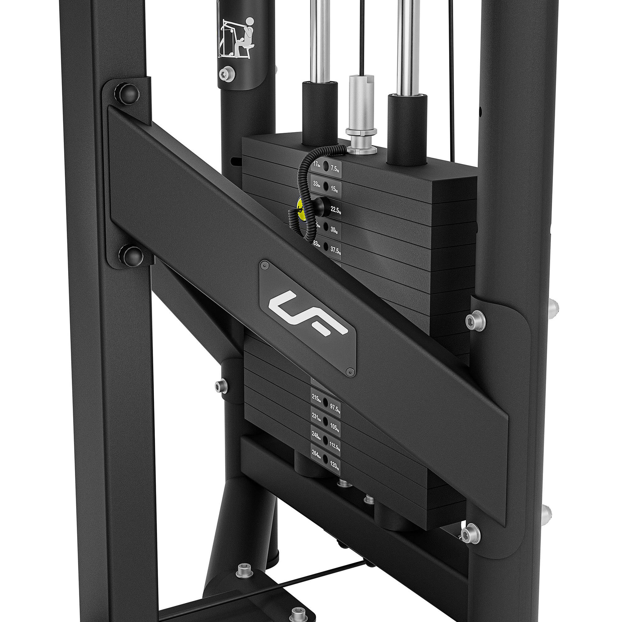 La máquina de dominadas UF-020 puede utilizarse para entrenar dominadas. Gracias a su diseño bien pensado, la máquina de dominadas está dirigida tanto a principiantes como a deportistas avanzados.